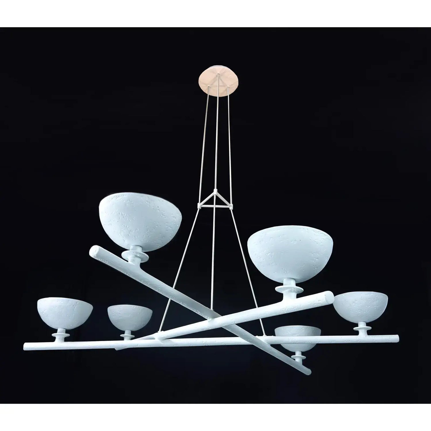 Duroc Chandelier featuring a three-arm design and six concealed uplights, harmonizes elegance and versatility. This chandelier complements both modern and traditional interiors, making it a versatile choice for any style. With our signature Plaster of Paris finish, the chandelier with its simple design adorned with classical design accents can be customized to suit your color palette due to its versatile plaster finish. Its adaptable size makes it ideal for illuminating living rooms, dining areas, or entryways, casting a sophisticated indirect light perfect for any setting. Each chandelier is hand-crafted and a unique creation. This chandelier utilizes six GU10 LED bulbs, each with a maximum wattage of 50. See less
