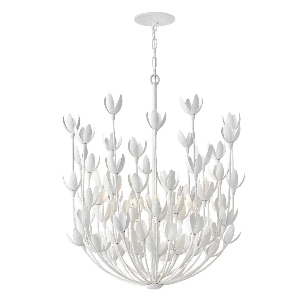 Flora is a work of art inspired by the delicate nature and beauty of florals. Blurring the line between lighting and sculpture, Floras handmade, hand-painted blooms mesmerizingly unfold while the bulbs beautifully nestle inside. Flora is available in a stunning Burnished Gold or Textured Plaster finish and is part of the Lisa McDennon collection.