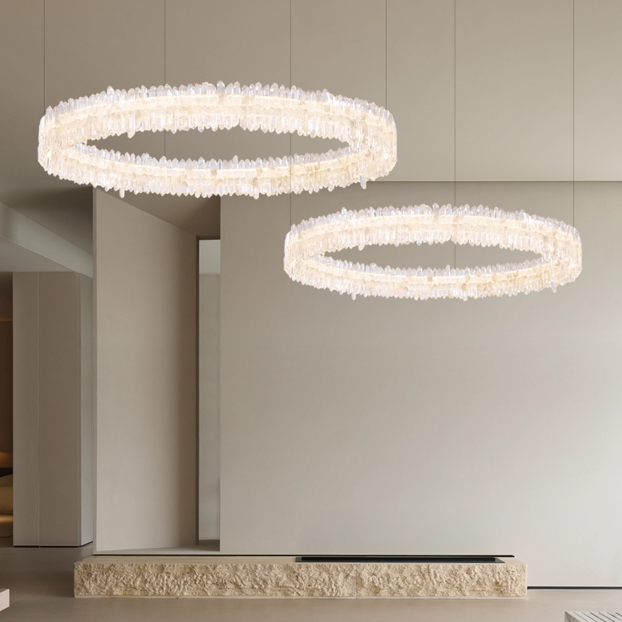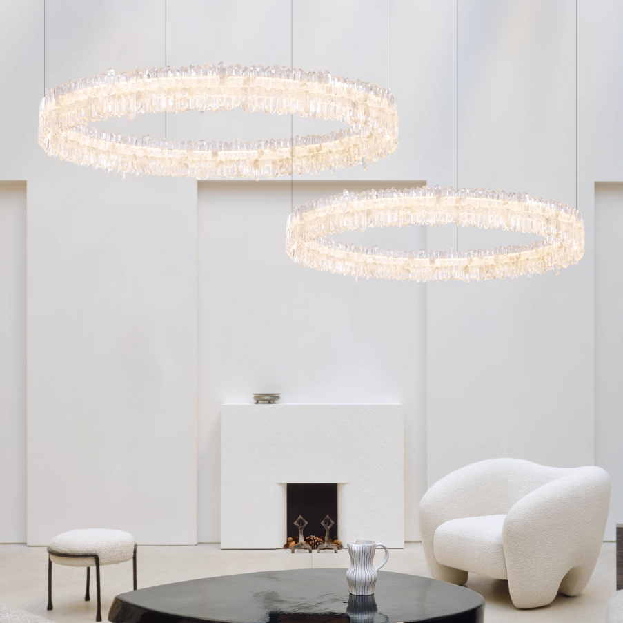 Thanks to its unique birefringence and multi-faceted structure, the crystal refracts light from every angle, creating a brilliant natural glow and a beauty that cannot be replicated. Every luminaire becomes a one-of-a-kind expression of nature and craftsmanship.