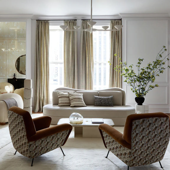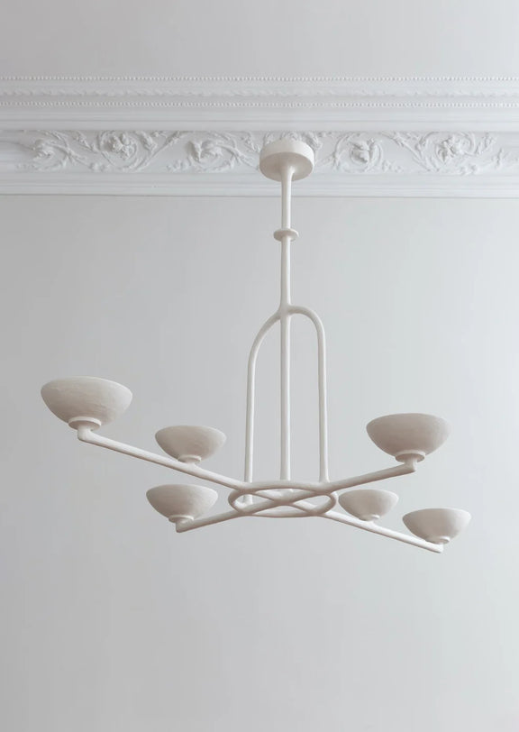 The Orion Chandelier by Radilum features plaster cups with LED lights, offering a customizable and modern lighting experience. With varying heights and efficient LED technology, this chandelier brings both style and energy savings to any room.